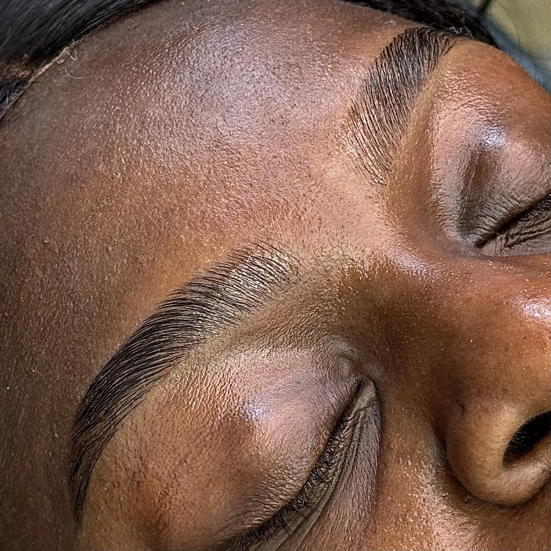 • Lamination (brow lift) to relax and reset the hairs for a fuller, fluffier look
